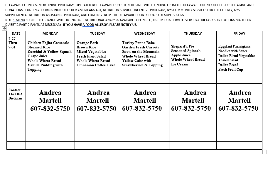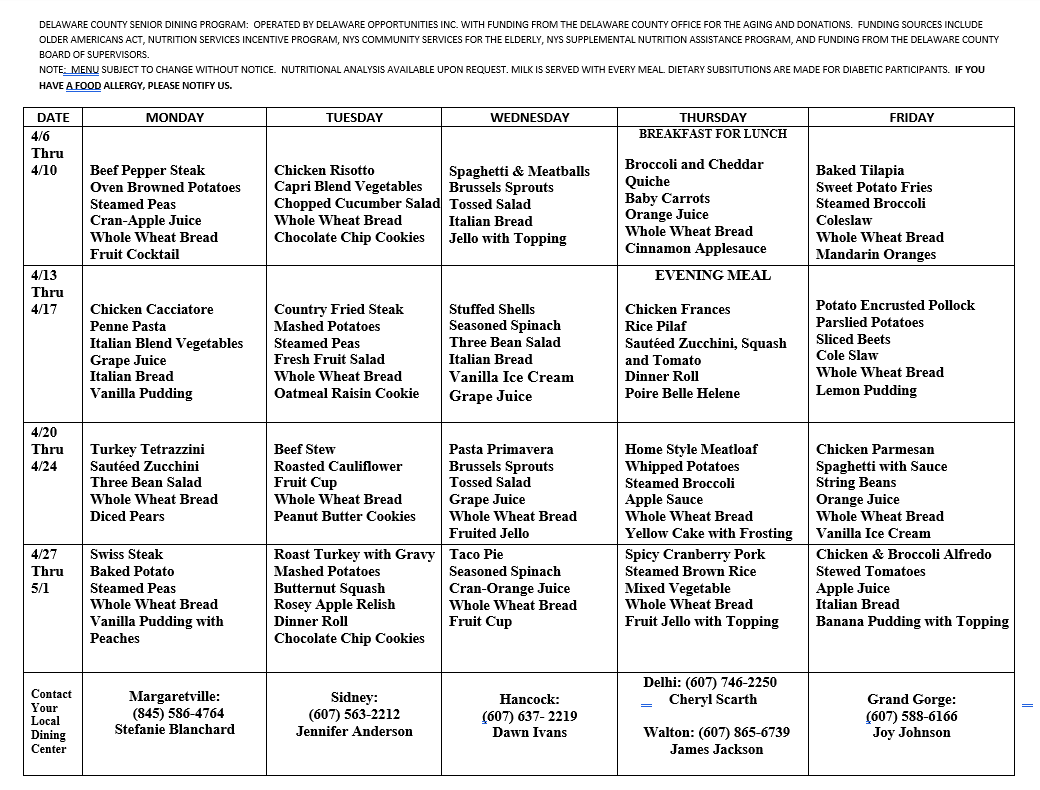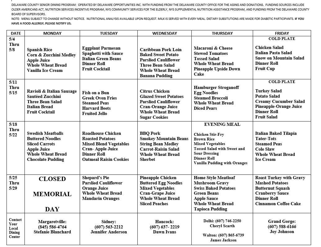 There are two main components to the Senior Dining Program: Congregate Dining and Home Delivered Meals. Congregate Dining is centered around enjoying a meal in a social setting with activities, dietary support and relevant informational presentations. This part of the program is for people who are mobile and can predominately self-transport. Home Delivered Meals are designed for homebound seniors who have difficulty preparing meals, physical limitations or transportation difficulties. This program provides daily contact as well a verbal and visual confirmation of one’s physical well-being. The delivery is also designed to provide a hot, nutritious meal while combating social isolation, food insecurity and malnutrition.