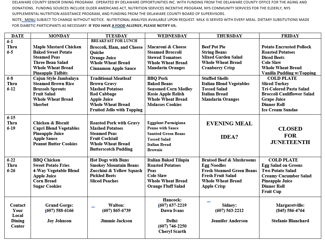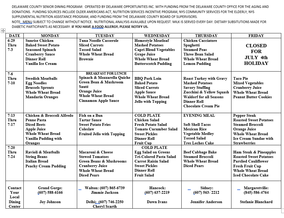 60 years and older and a resident of Delaware County for home delivered meals. 60 years and older for congregate meals at the meal sites. There are no income requirements or restrictions.